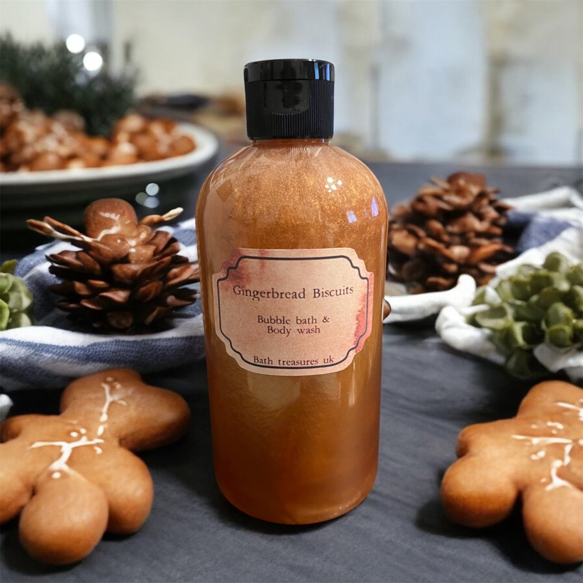 Our “Gingerbread Biscuits” 2 in 1 bubble bath & body wash has a freshly baked gingerbread aroma with top notes of rich warm spicy ginger, blended with mouthwatering notes of cinnamon, orange, buttery biscuit and a whisper of sweet sugary vanilla 💫
