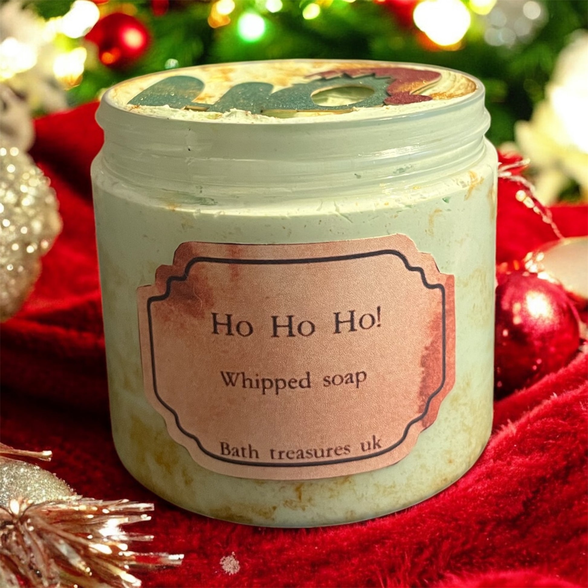 Our “Ho Ho Ho!” Whipped soap has a rich spicy oriental fragrance with notes of warm cinnamon, clove, nutmeg and ginger complemented by precious woods, creamy vanilla and nuances of smoky tobacco 💫