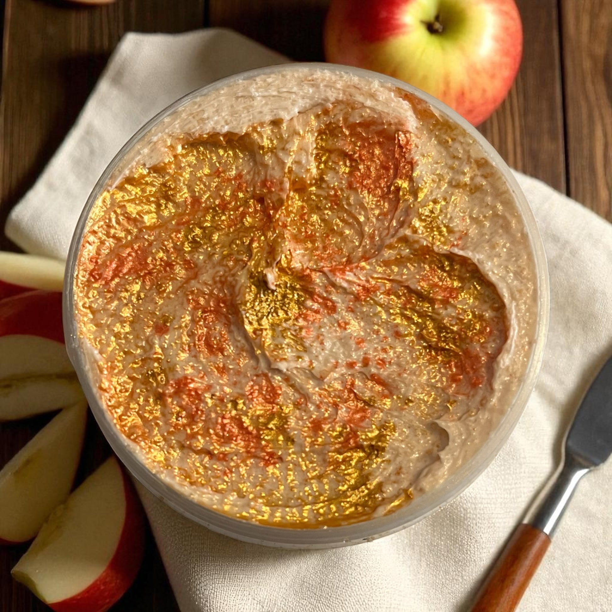 spicy apple with a warm buttery background 🤤💫