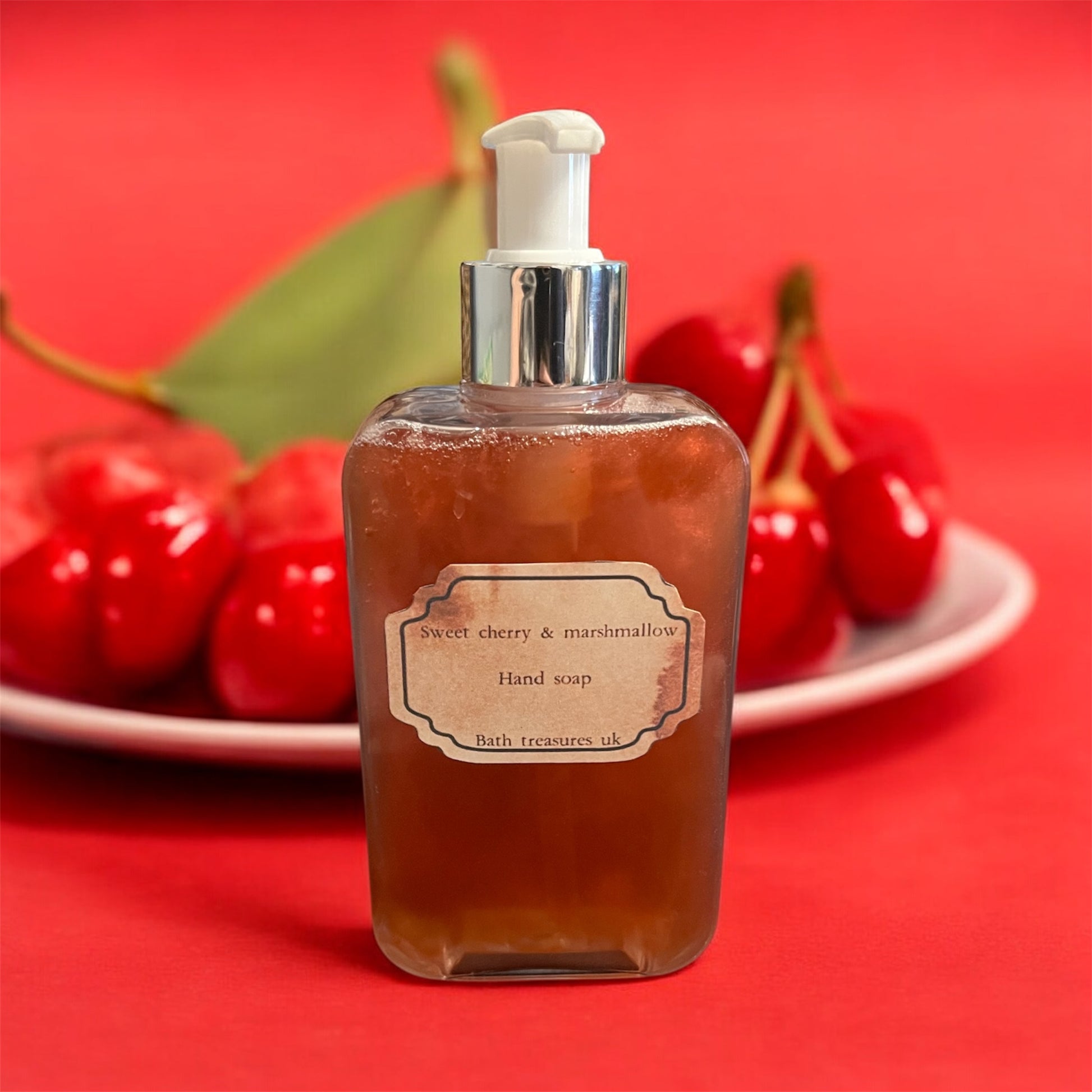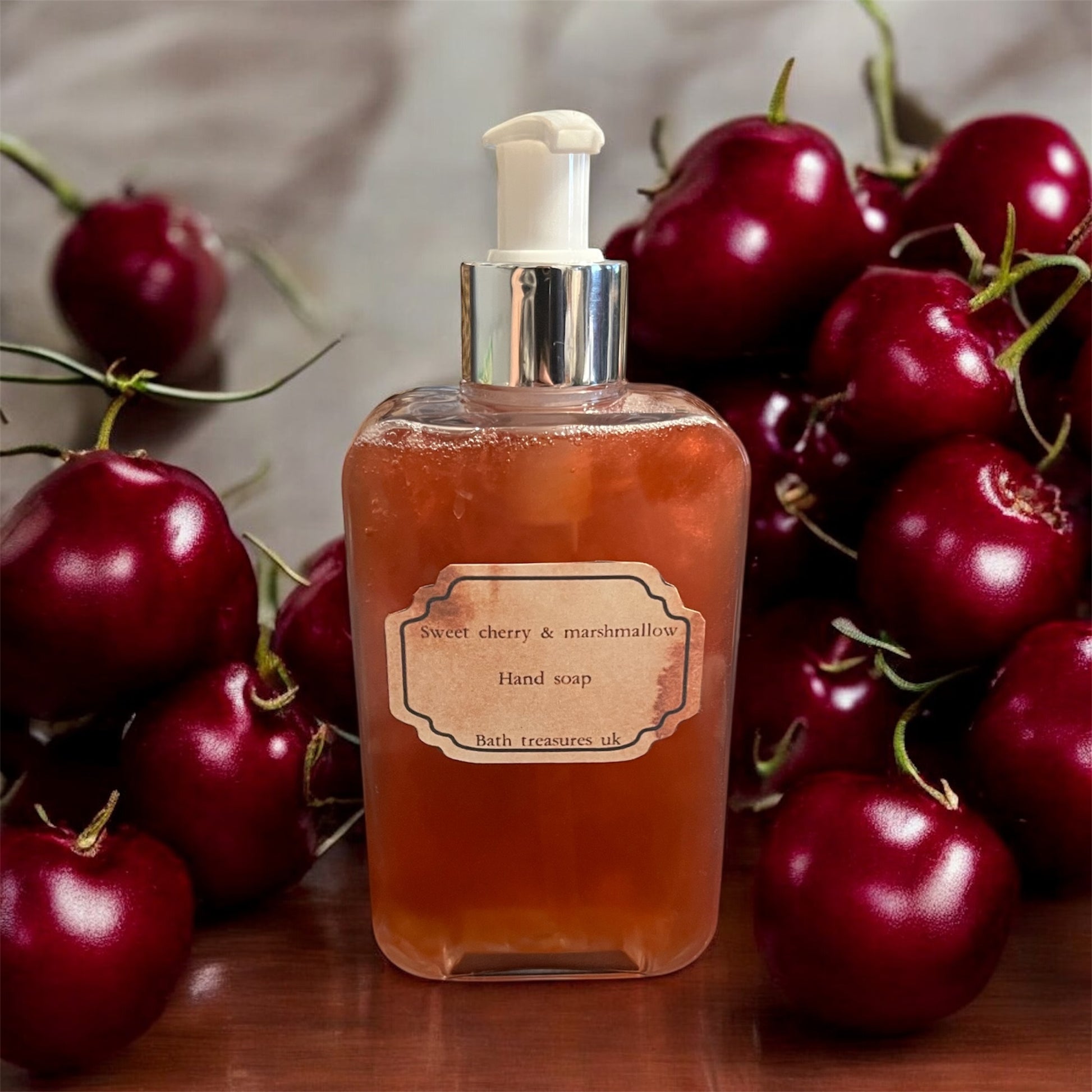 Our “Sweet cherry & Marshmallow” hand soap is a gorgeous sweet cherry accord which is brightened with hints of strawberry and rich vanilla 🍒🍓💫