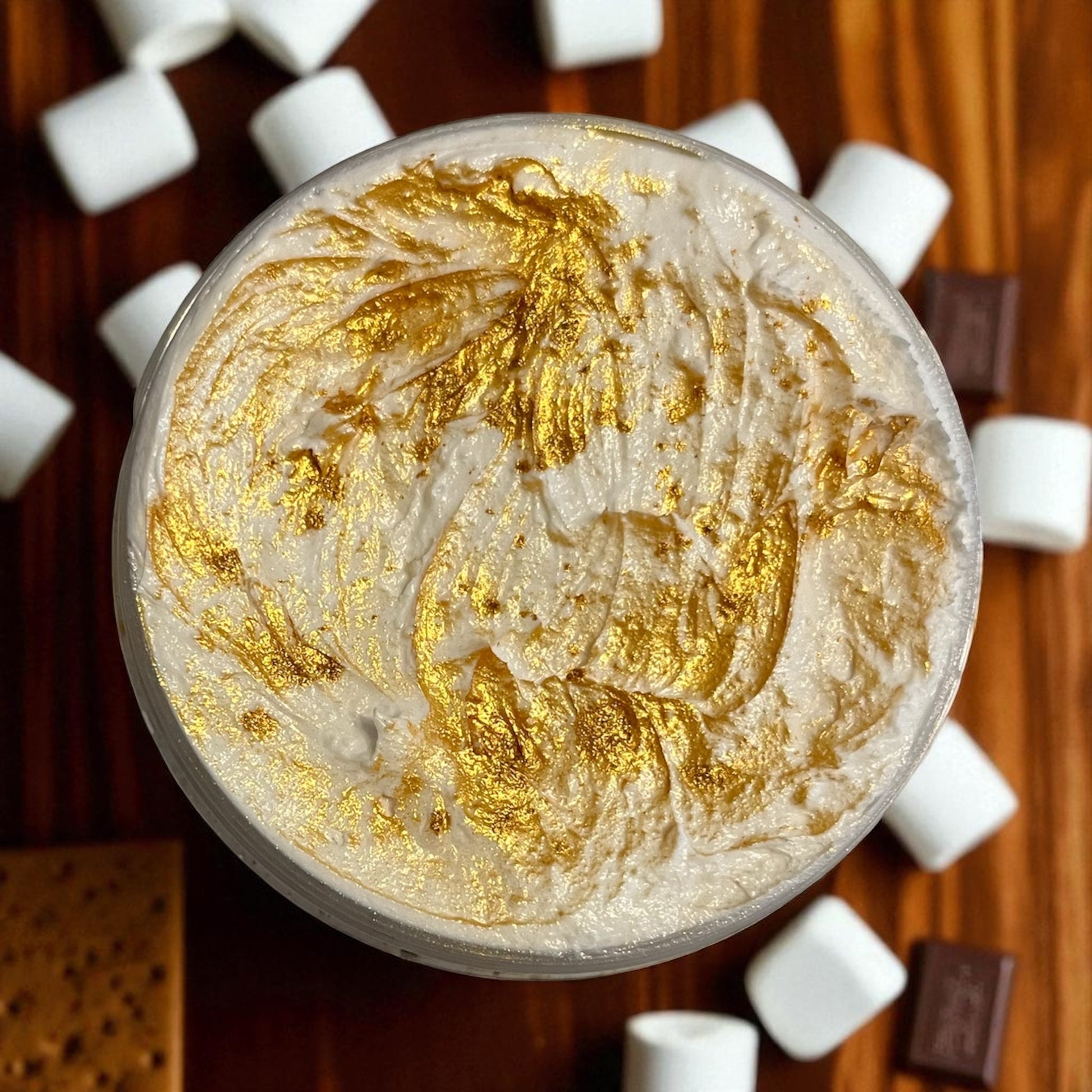 Our “Gimme s’more” whipped soap is a gorgeous gourmand scent reminiscent of cosy evenings toasting marshmallows around the camp fire 💫