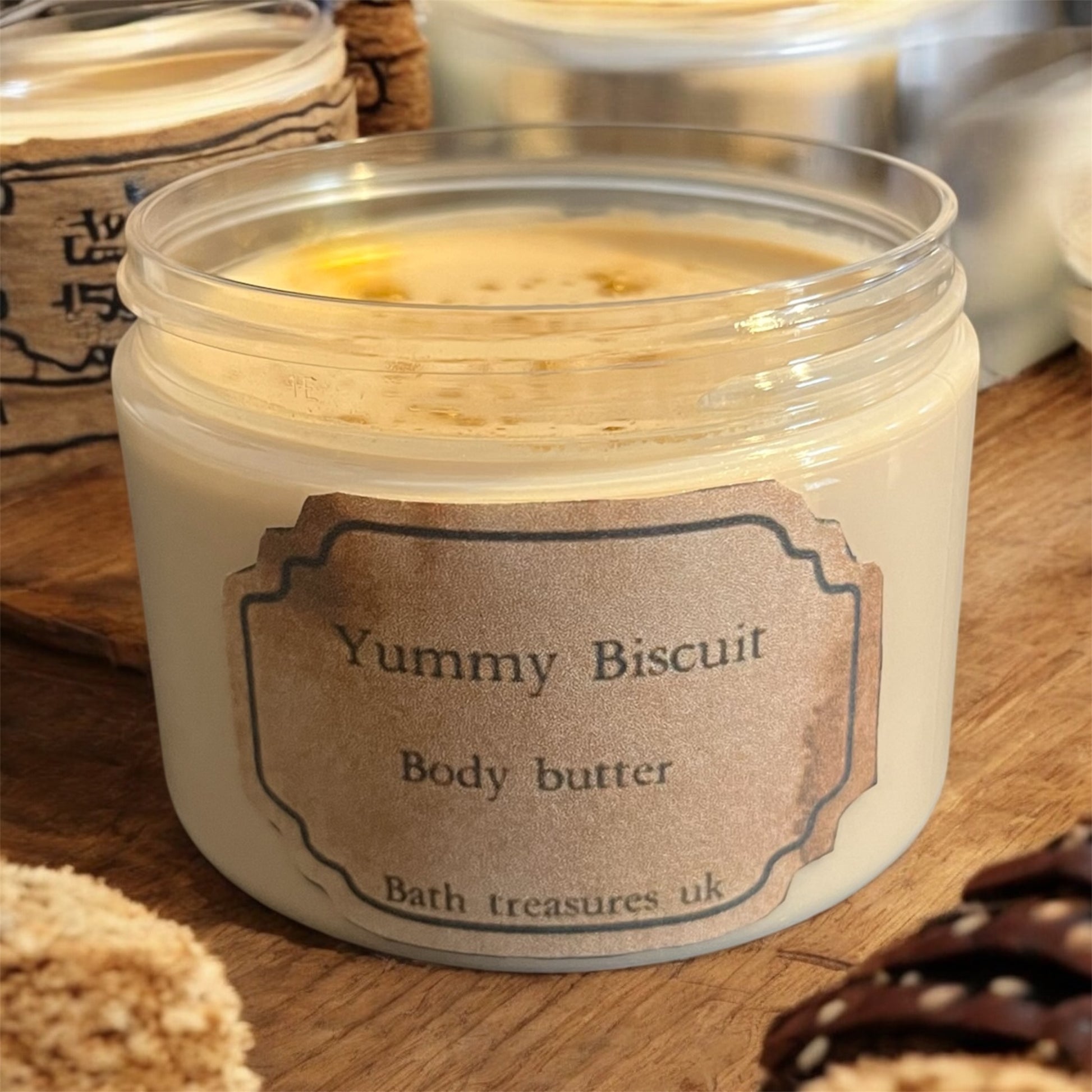 Our “Yummy Biscuit” body butter is a warm, golden, and irresistibly nostalgic scent 💫